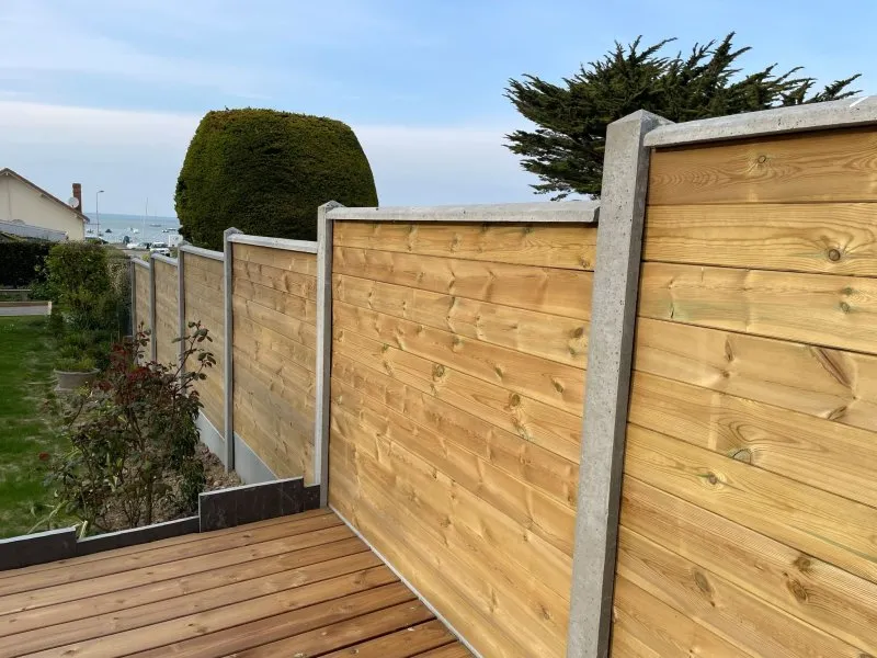Les clôtures mixtes bois/béton allient solidité et élégance pour délimiter vos espaces avec style. La robustesse du béton assure stabilité et longévité, tandis que le bois apporte chaleur et authenticité. Ce mariage harmonieux offre un rendu moderne et naturel, tout en garantissant intimité, résistance aux intempéries et une parfaite intégration dans tous les environnements extérieurs.