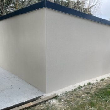 Structure panneaux préfabriqué en béton armé avec enduit traditionnel -