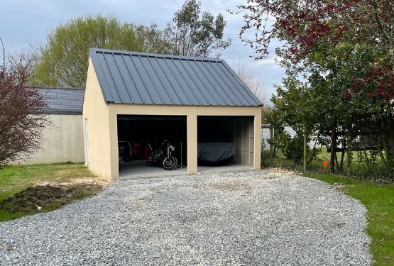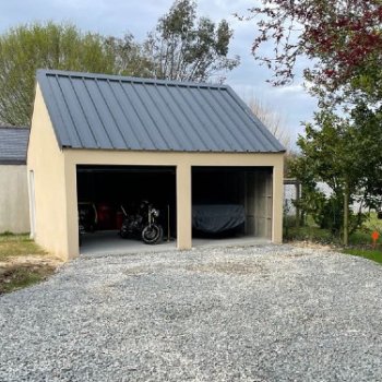Garage double en béton enduit (2 pentes) gamme Doizon